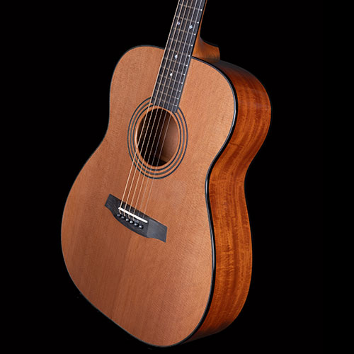 It's an Orsino, but using lightly figured Cuban Mahogany for the body rather than our usual Brazilian Mahogany. The soundboard is rather splendid Western Red Cedar with mosaic inlays.