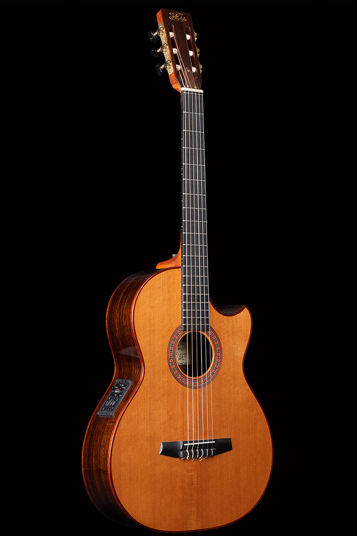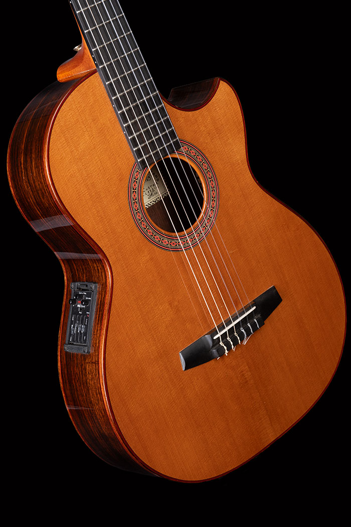 Indian Rosewood body with Cedar Top, 47mm fingerboard, suited to “cross over” styles and fitted with the Fishman Problend pickup