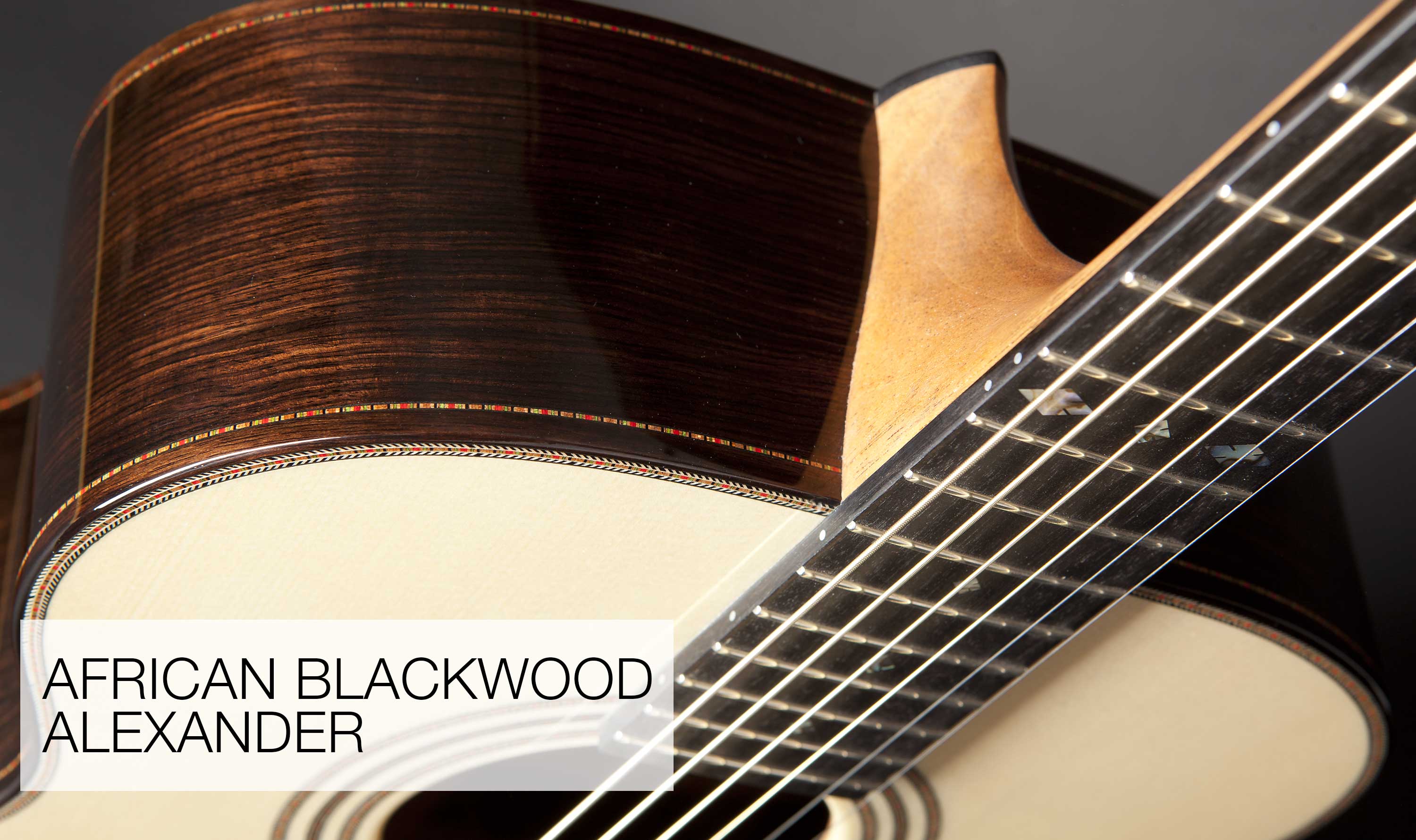 I made a similar guitar about two years ago, with a longer scale and using German Spruce. It caught everyone’s attention and now lives with Troy Donockley. The Italian Spruce does seem to have something extra, it’s a harder timber, and produces a stronger sound. African Blackwood is becoming the wood of choice for travelling professionals as Brazilian Rosewood is causing so much worry when crossing borders. Most of it is not even close to black in colour, and technically, it’s a Rosewood - Dalbergia Melanoxylon and not an Ebony as some people think. This piece is darker than it looks in the pictures, it’s so difficult to photograph that Mike has to pour lots of light onto it. The back is three-piece, as bigger pieces are already becoming so expensive and difficult to find. The 46 mm neck is mahogany, which I wanted to stain black, but the wood wouldn't accept enough colour, so I have left it brown with black grain, rather nice I think. The bindings are rosewood to keep it simple, and the tuners velvety Gotoh 510's.