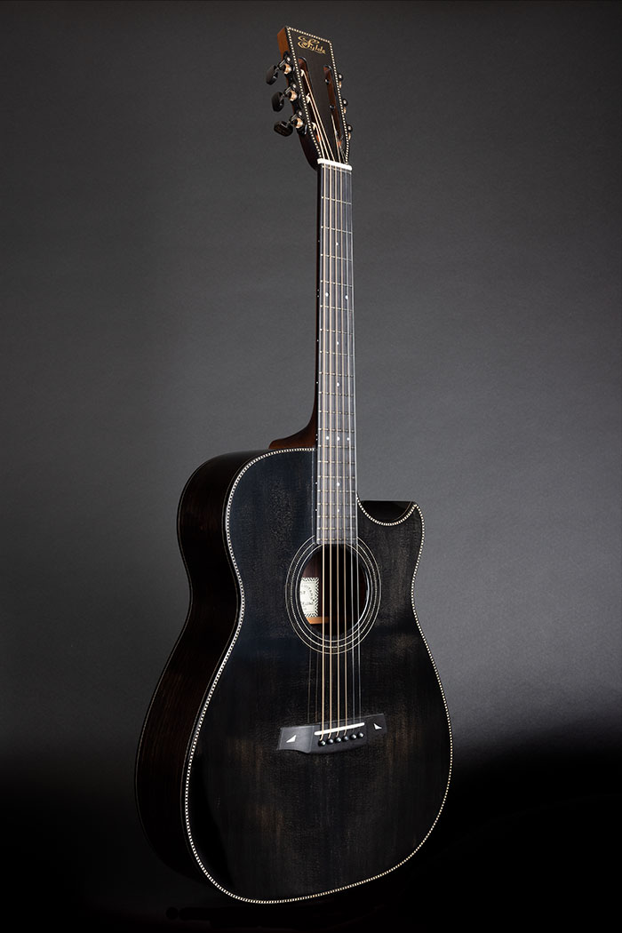 So here we are, it's not a murder but it is a radical departure from what we normally make. Richard and I had been discussing the idea for about two years. He wanted the "checker" purfling like a Rickenbacker and the guitar needed to be black, referring to some other iconic American guitars.