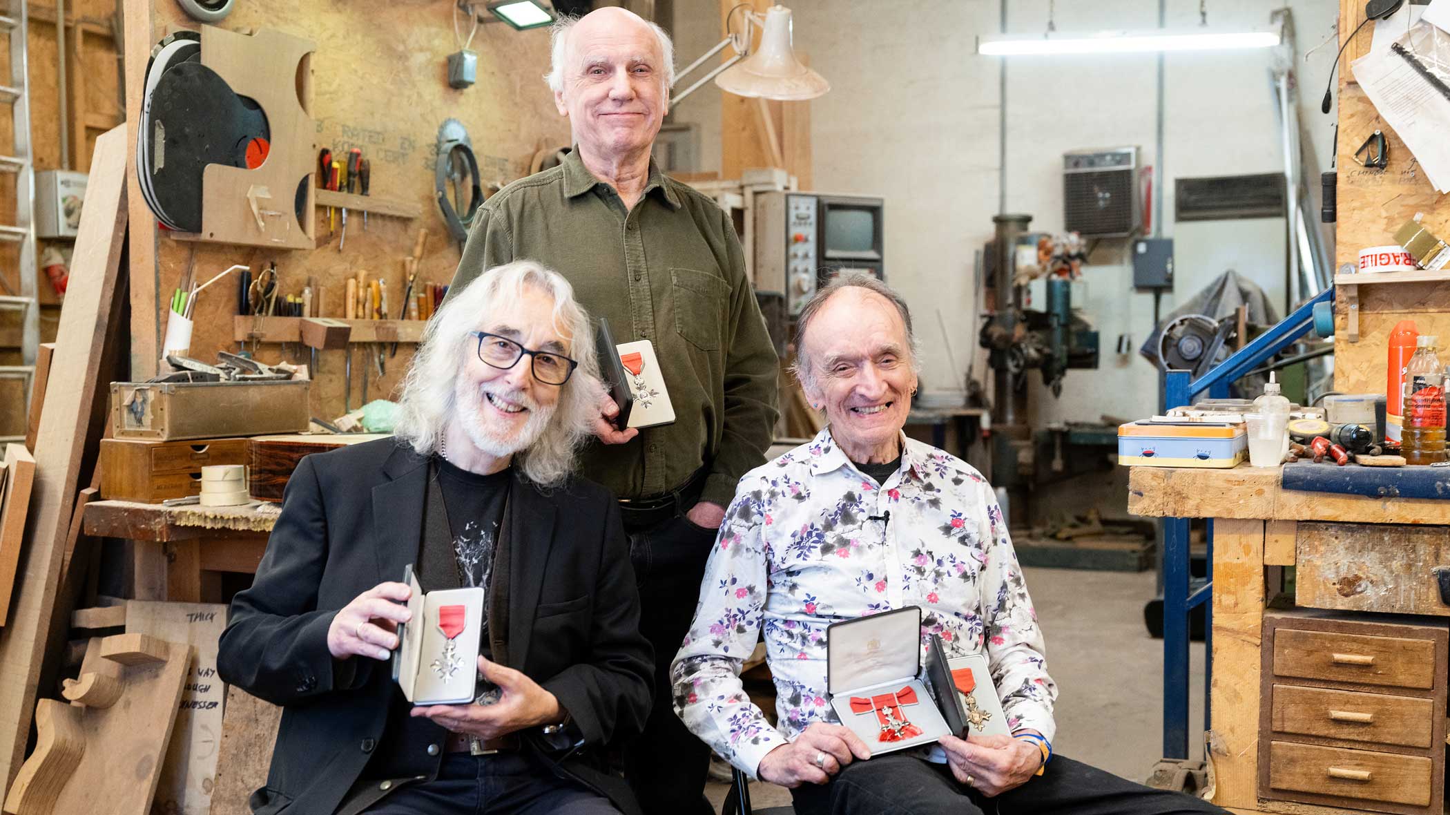 The picture is very special for me. Martin Carthy and Gordon Giltrap, the two people that probably inspired and helped me more than any others, came along to help me celebrate fifty years of professional guitar making. What an honour on top of the shiny badge.