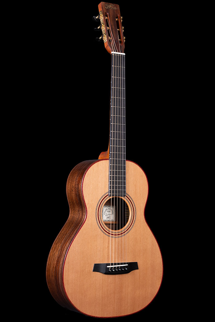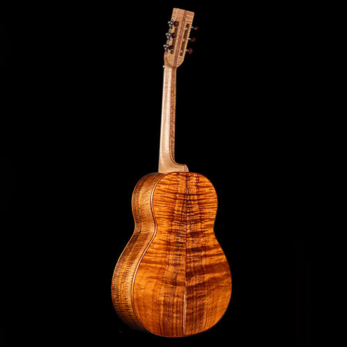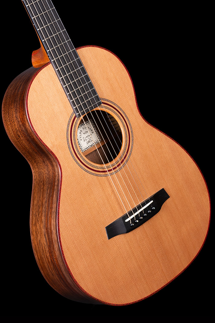 It's a 12-fret long scale, placing the bridge just where it wants to be to achieve a big, rich, warm balanced tone. A beautiful little giant of a guitar.