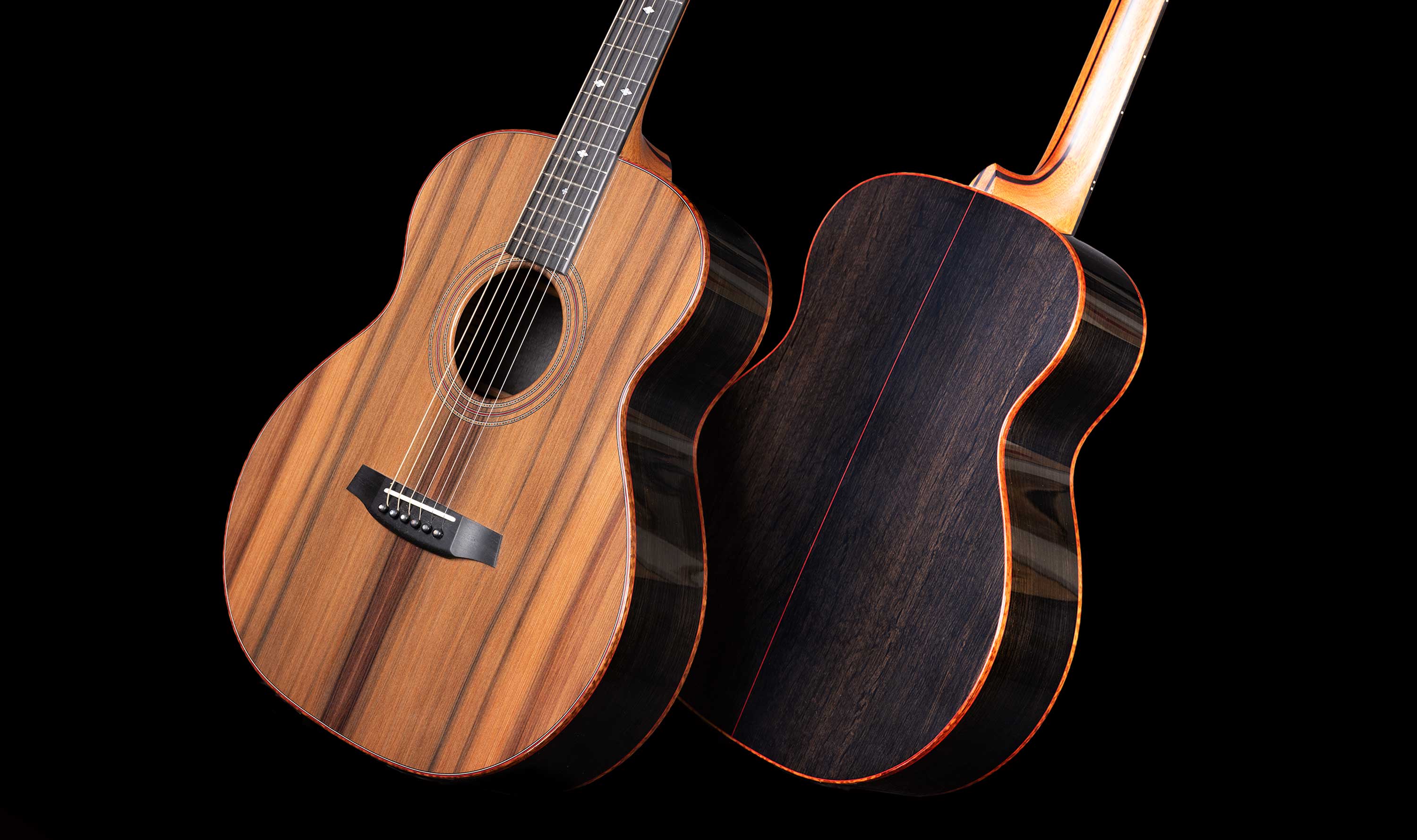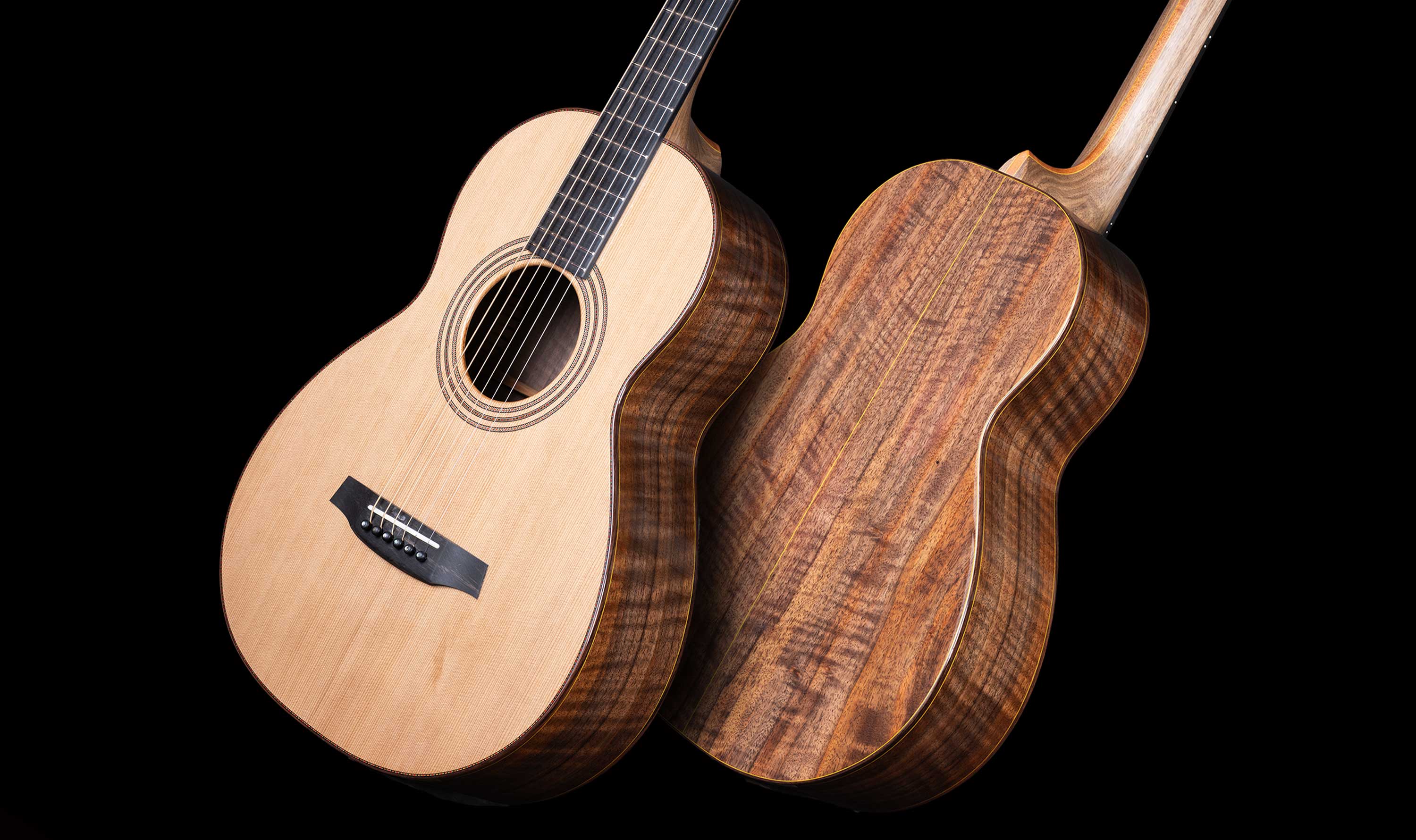 It's an Orsino, but using lightly figured Cuban Mahogany for the body rather than our usual Brazilian Mahogany. The soundboard is rather splendid Western Red Cedar with mosaic inlays.