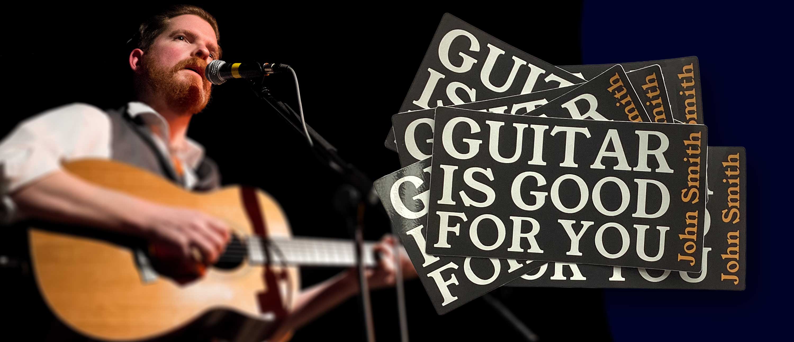 John has made another of those YouTube shorts, extending his views on the value of guitars in his life, but you'll have to look for it yourself. Also, he is selling these rather nice stickers at his live shows. He sells his stickers on his merch stall. Say it as fast as you can.