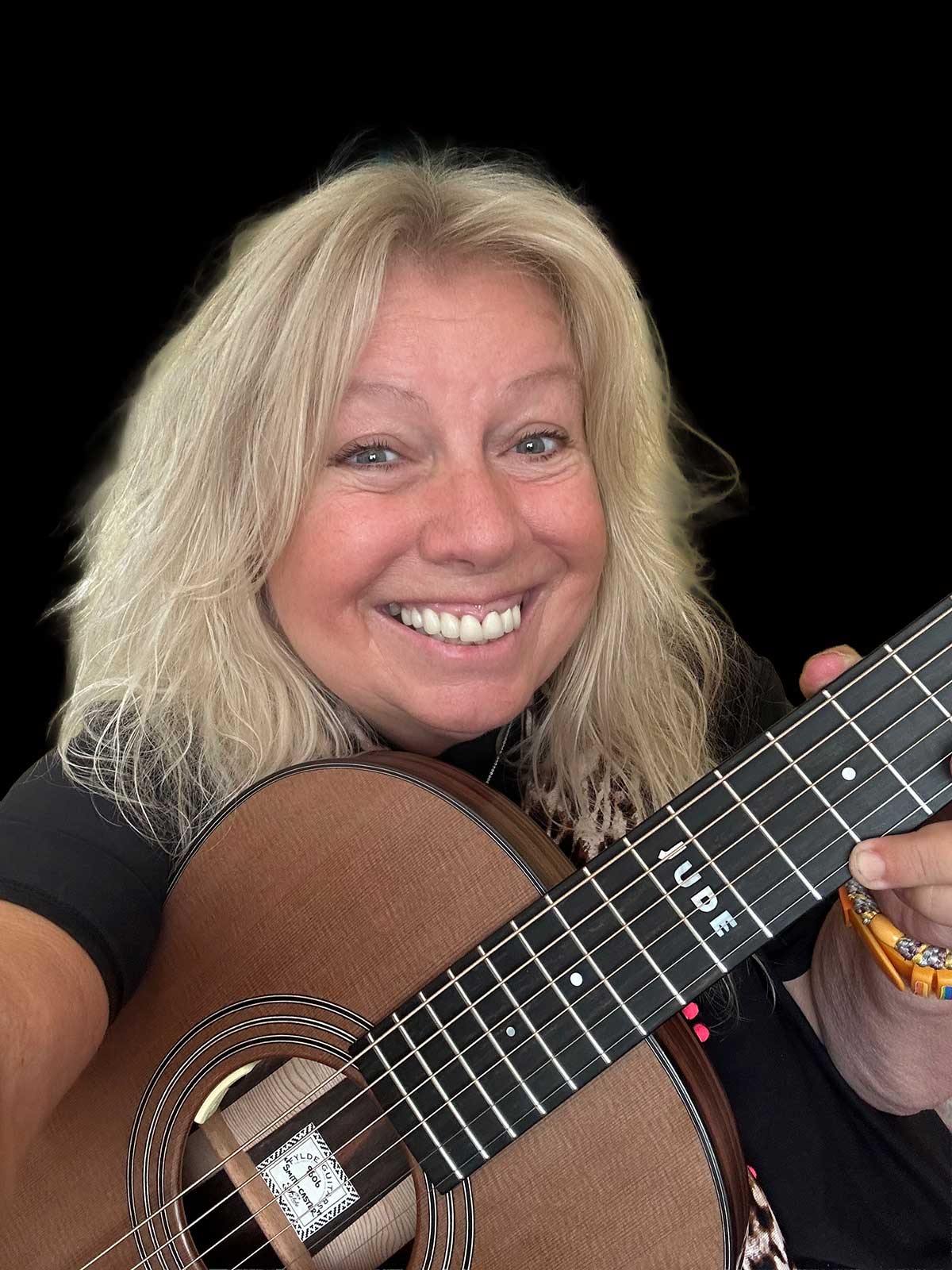 Her guitar up till now has been a Tony Zemaitis acoustic originally made for Mary Hopkin, but now under a little threat from her new "Smithcaster".