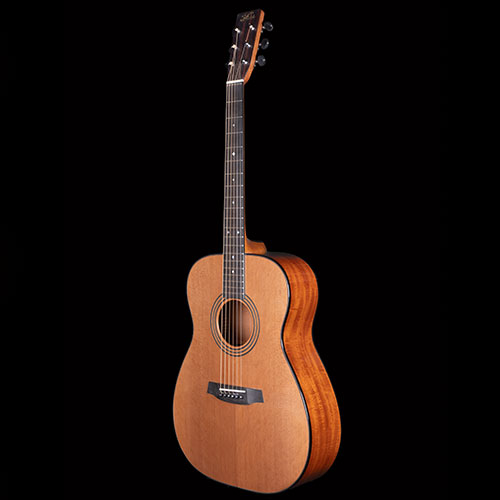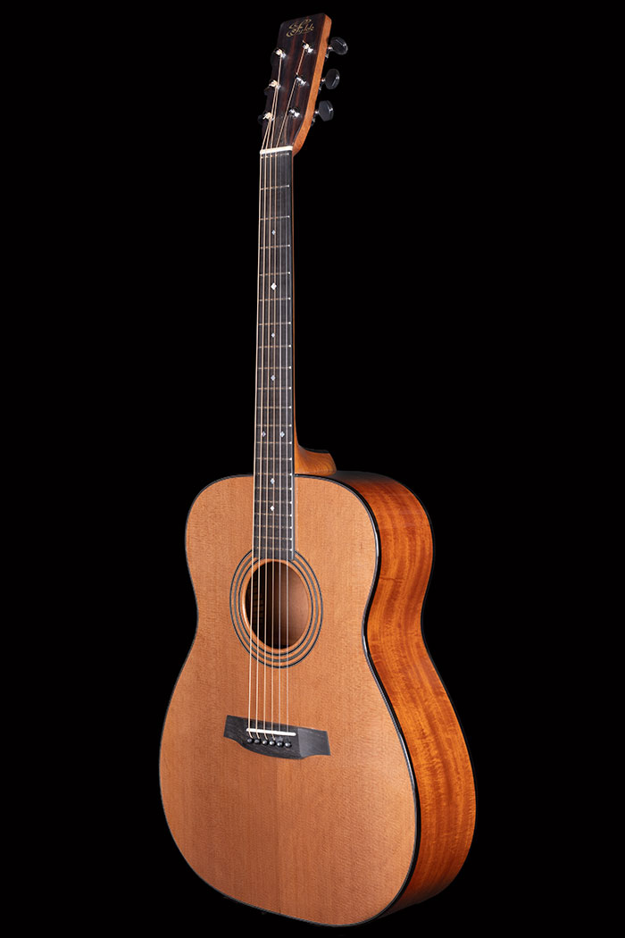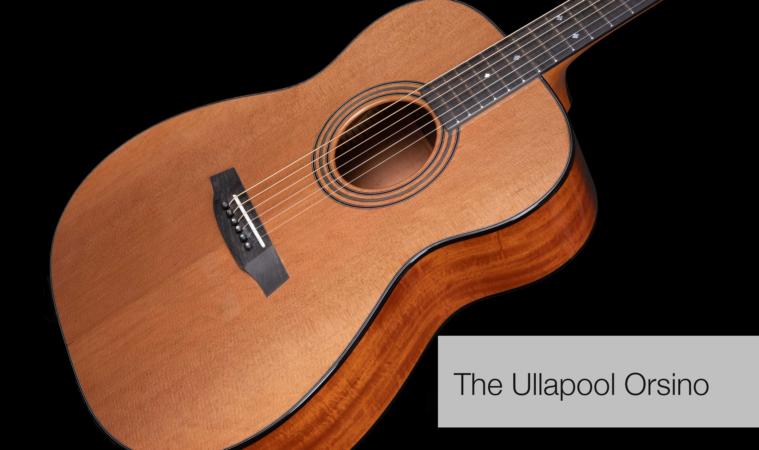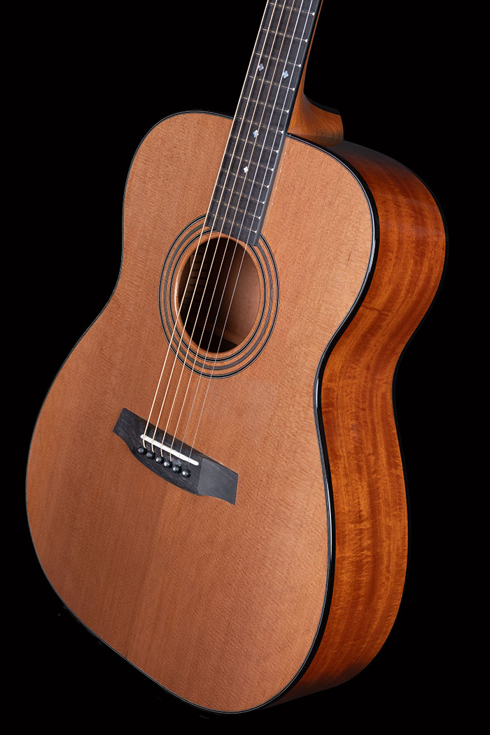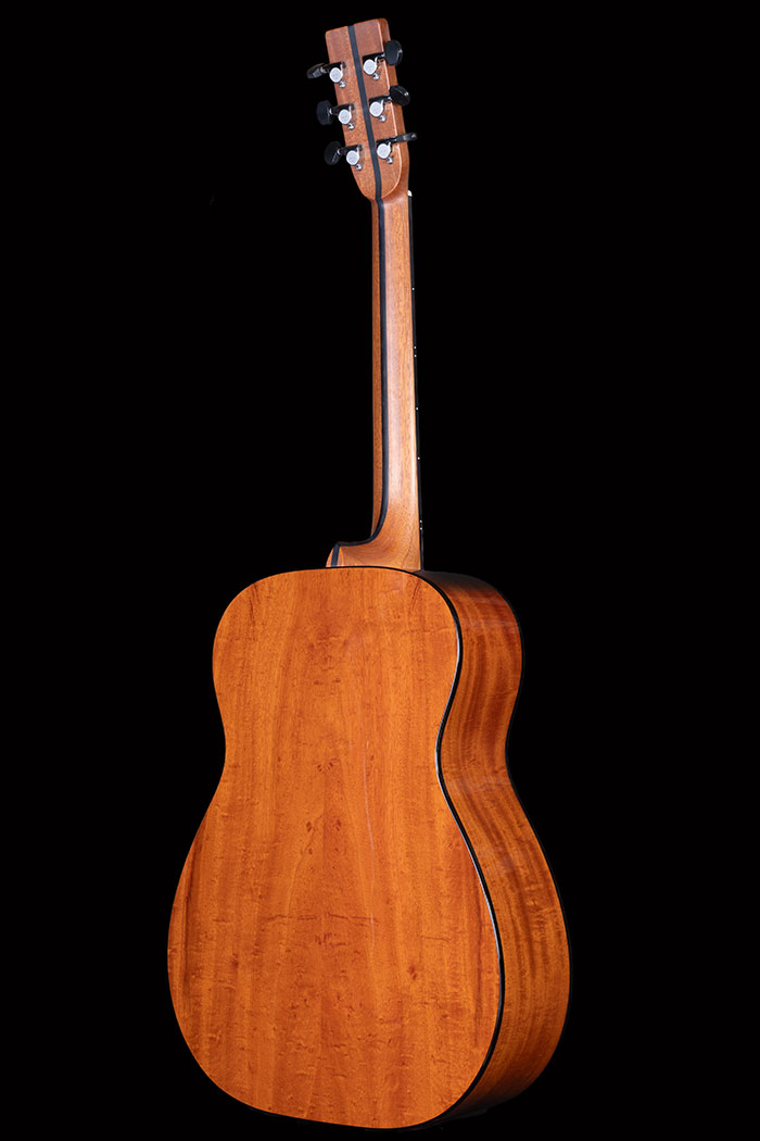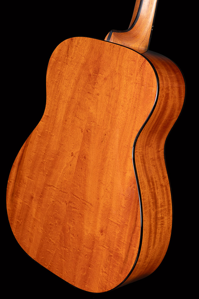 It's an Orsino, but using lightly figured Cuban Mahogany for the body rather than our usual Brazilian Mahogany. The soundboard is rather splendid Western Red Cedar with mosaic inlays.