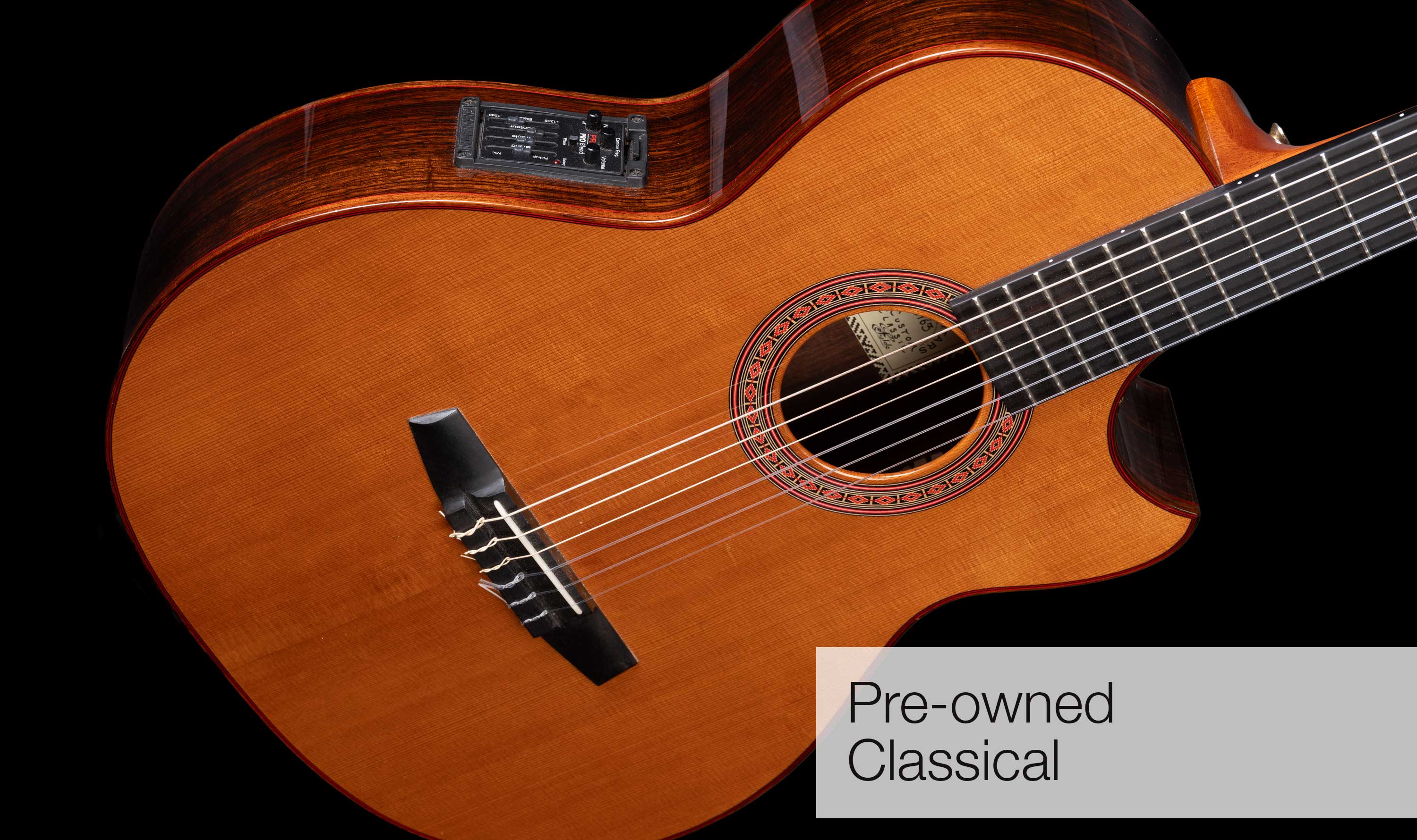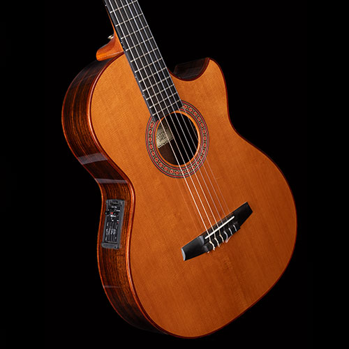 Indian Rosewood body with Cedar Top, 47mm fingerboard, suited to “cross over” styles and fitted with the Fishman Problend pickup