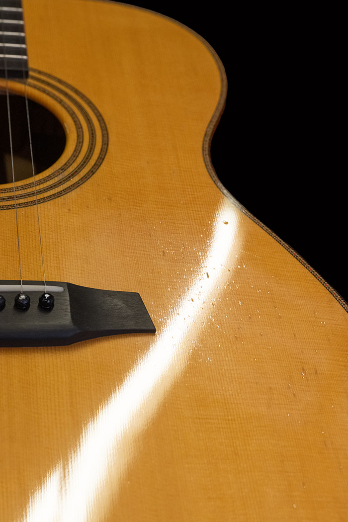 The soundboard has a lot of small pick marks, and there is "buckle rash" near the strap pin, so it’s difficult to set a price, but in the ways that really matter, this is an excellent guitar.