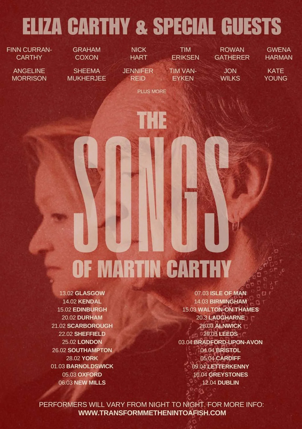 Following quickly on from Martin's retirement from live performance. Eliza is pulling together a wide and wonderful collection of Martin's friends to keep the songs and memories going. A lot of our friends are taking part.