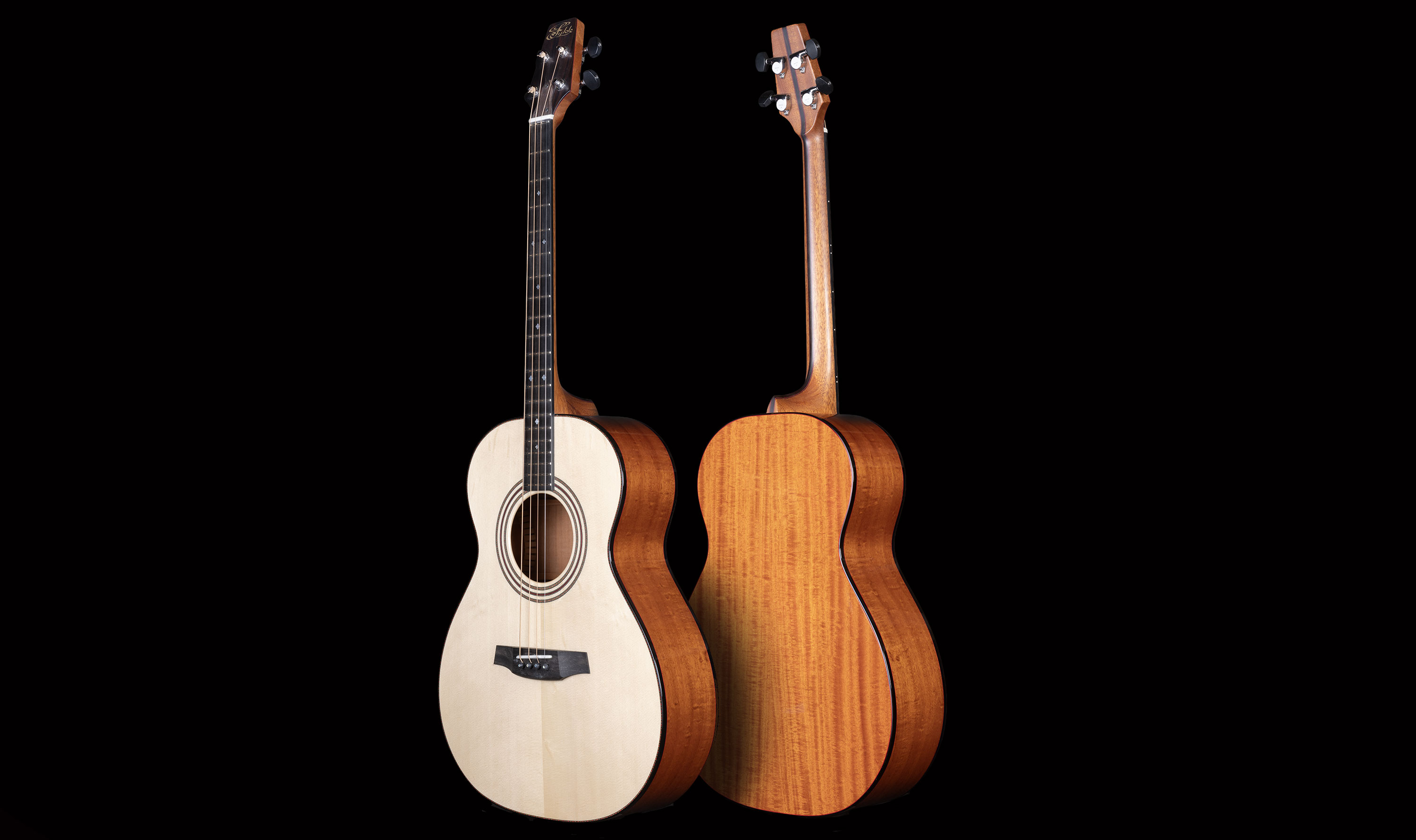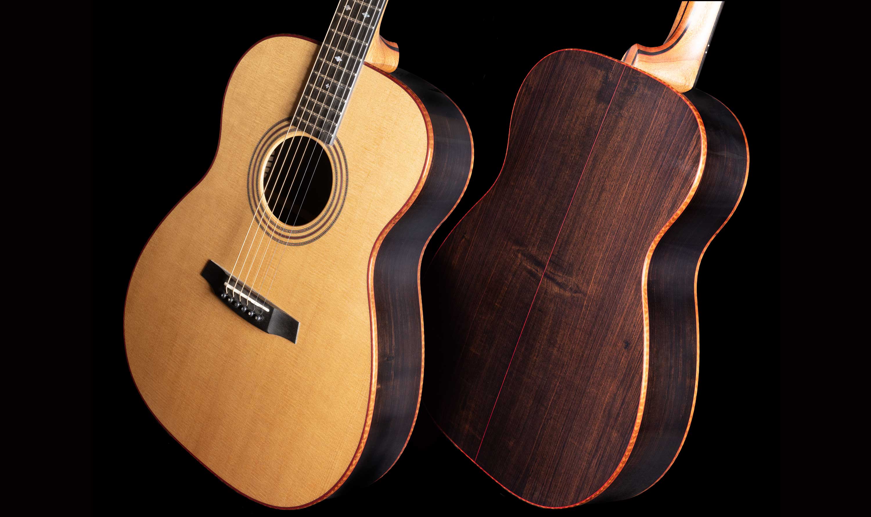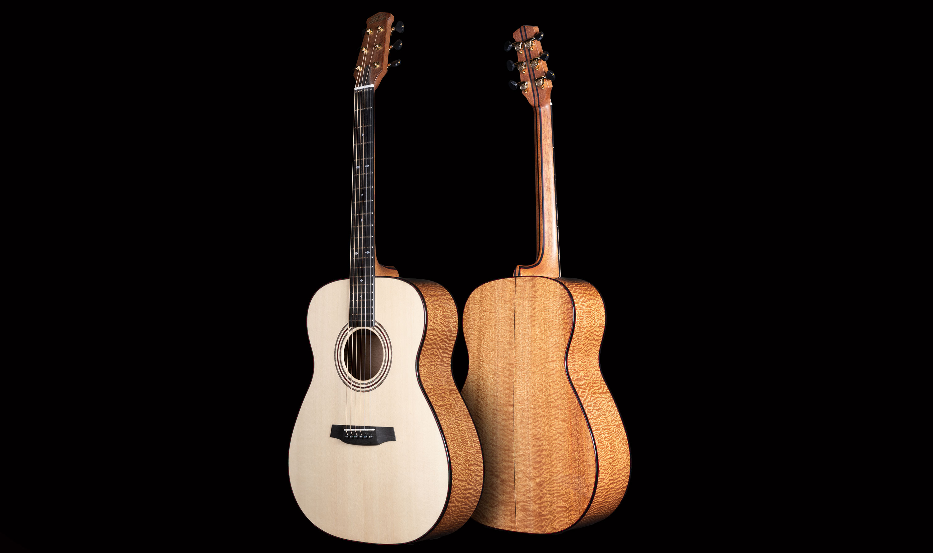 It's an Orsino, but using lightly figured Cuban Mahogany for the body rather than our usual Brazilian Mahogany. The soundboard is rather splendid Western Red Cedar with mosaic inlays.